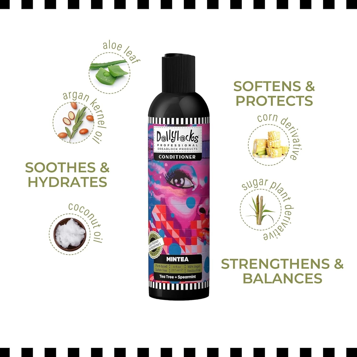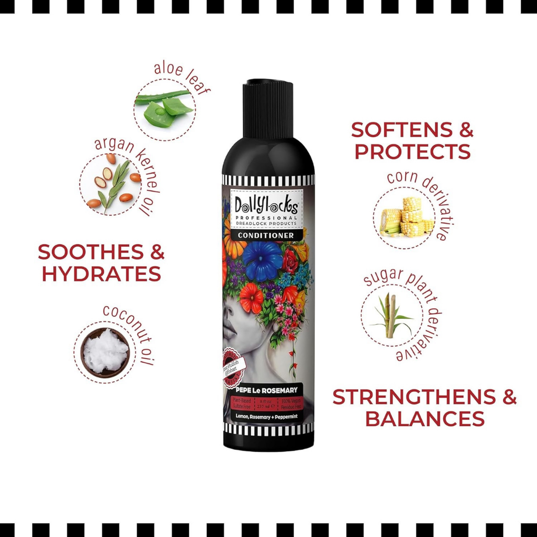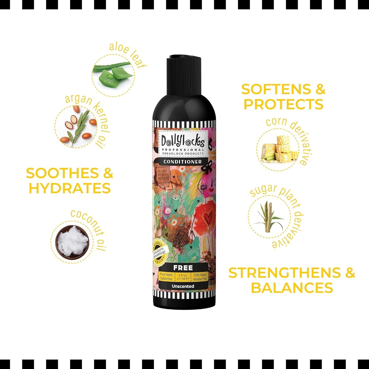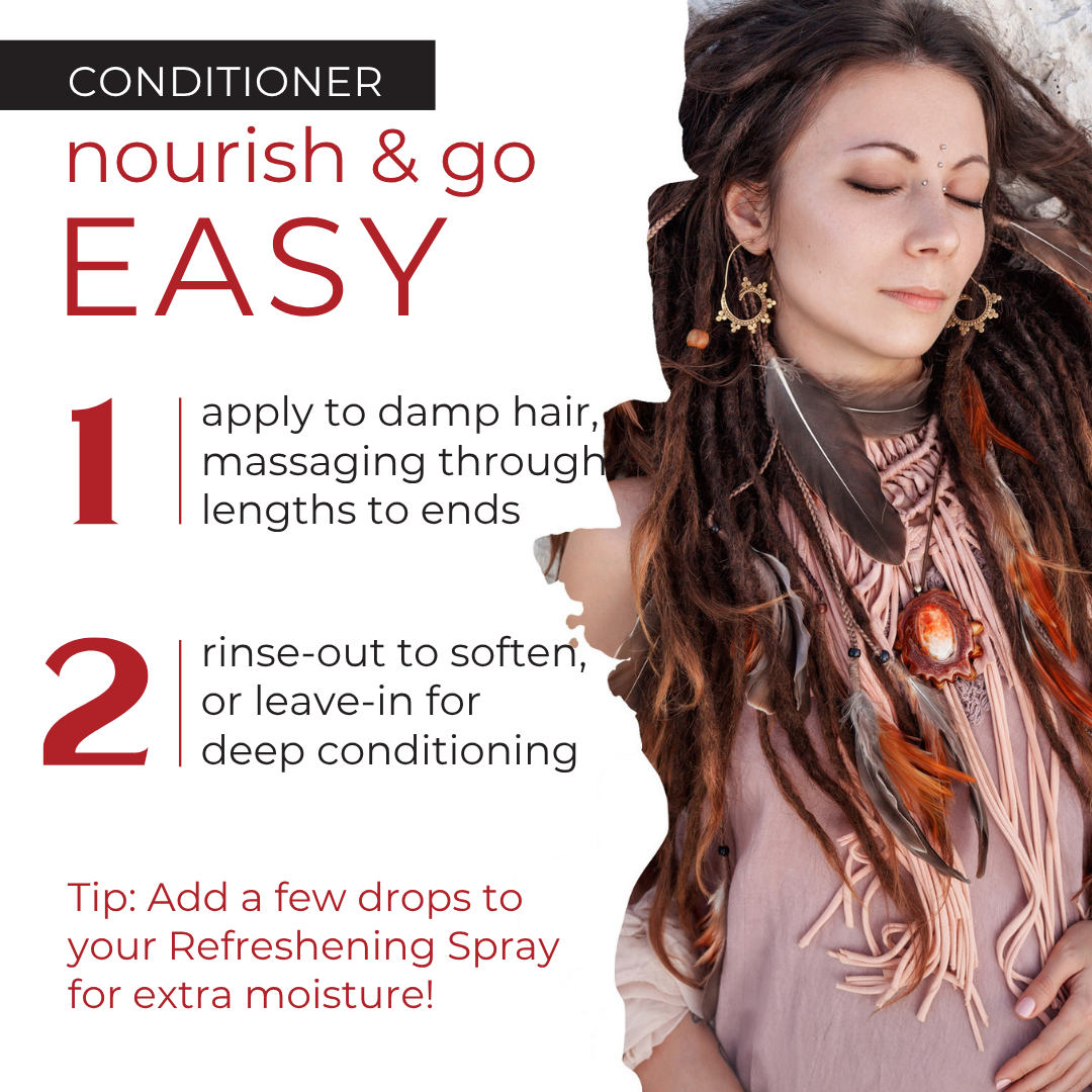 A pH-balanced, versatile, lightweight conditioner designed to revitalize any hair type or texture: dreadlocks, brushable natural hair, and faux textures and formulated to replenish moisture and strengthen hair, preventing breakage and damage while leaving your hair feeling healthy, shiny, and soft without any buildup.