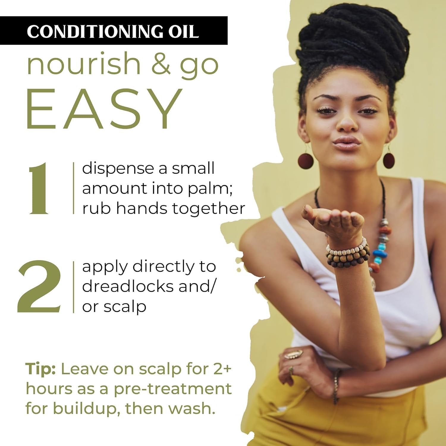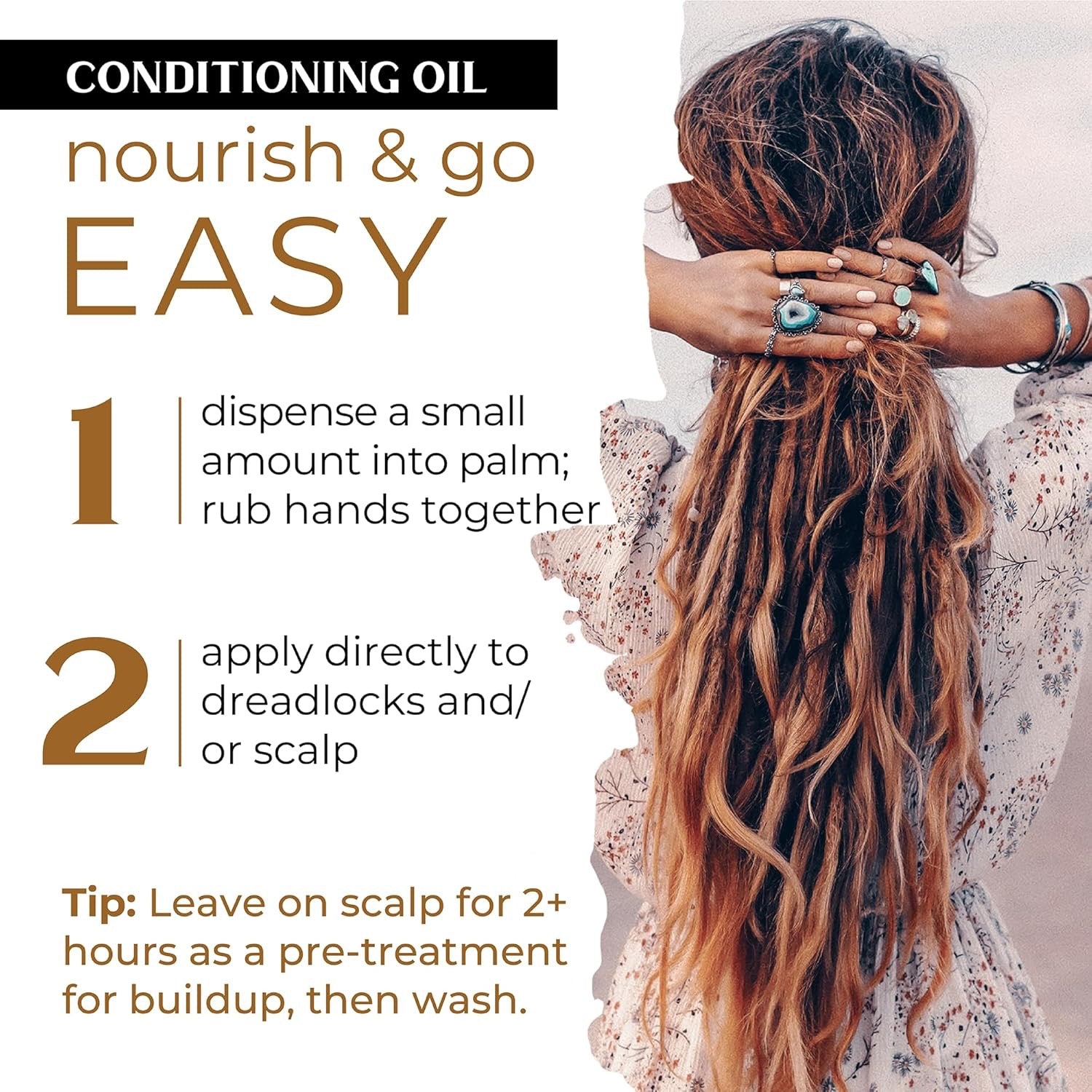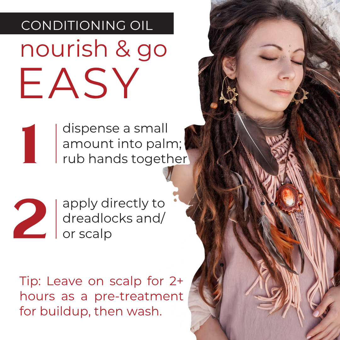 TO USE:Dispense a small amount into palm. Rub hands together and apply directly to dreadlocks and/or scalp. Use as needed.