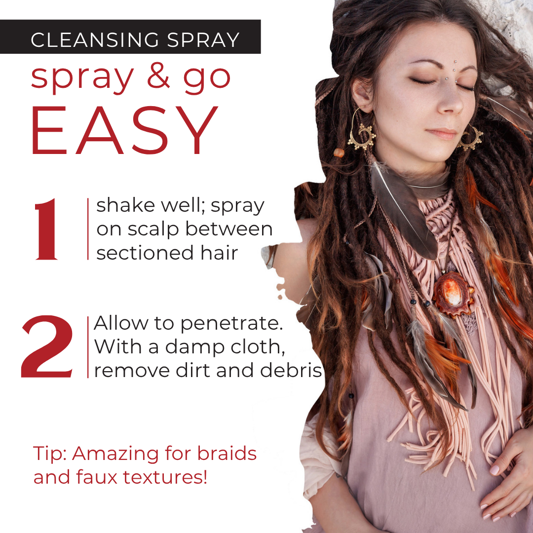 TO USE: Shake well. Spray directly onto scalp between sectioned hair. Allow to penetrate. With a damp cloth, remove dirt and debris. Use an exfoliating cloth to remove scalp buildup.