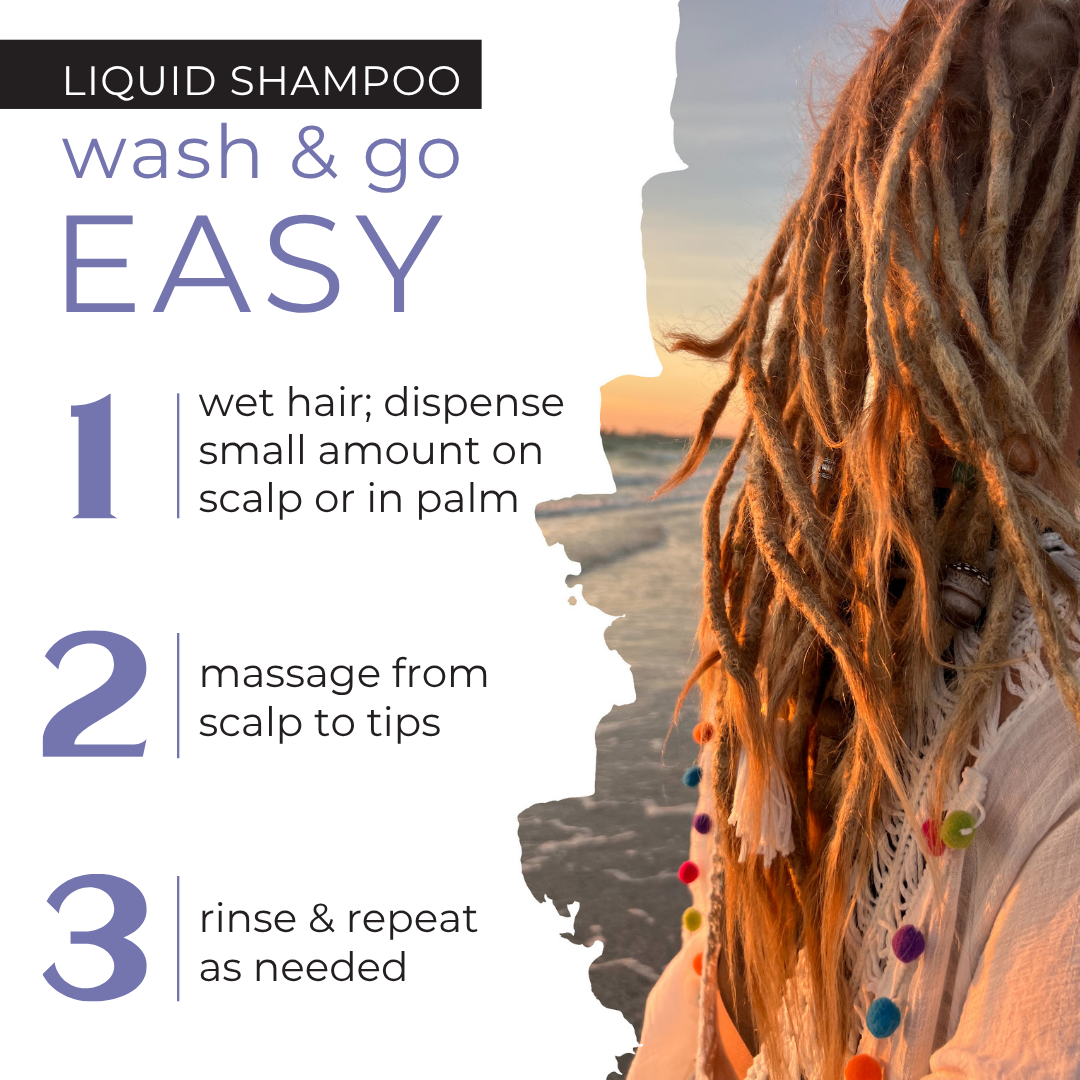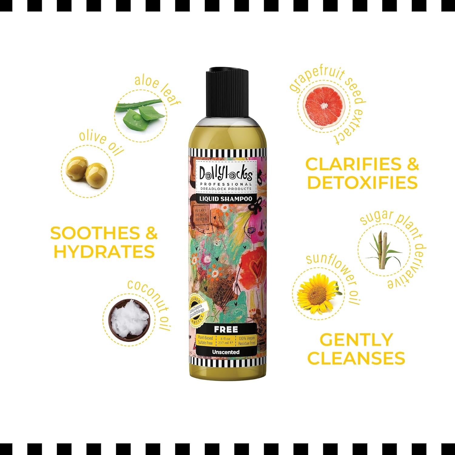 A lightweight pH-balanced clarifying shampoo gently cleanses your scalp and hair, removing buildup, impurities, and excess oil. Rich in essential fatty acids and soothing plant extracts, keeping your dreadlocks squeaky clean, healthy, and tight without stripping hair or leaving residue.