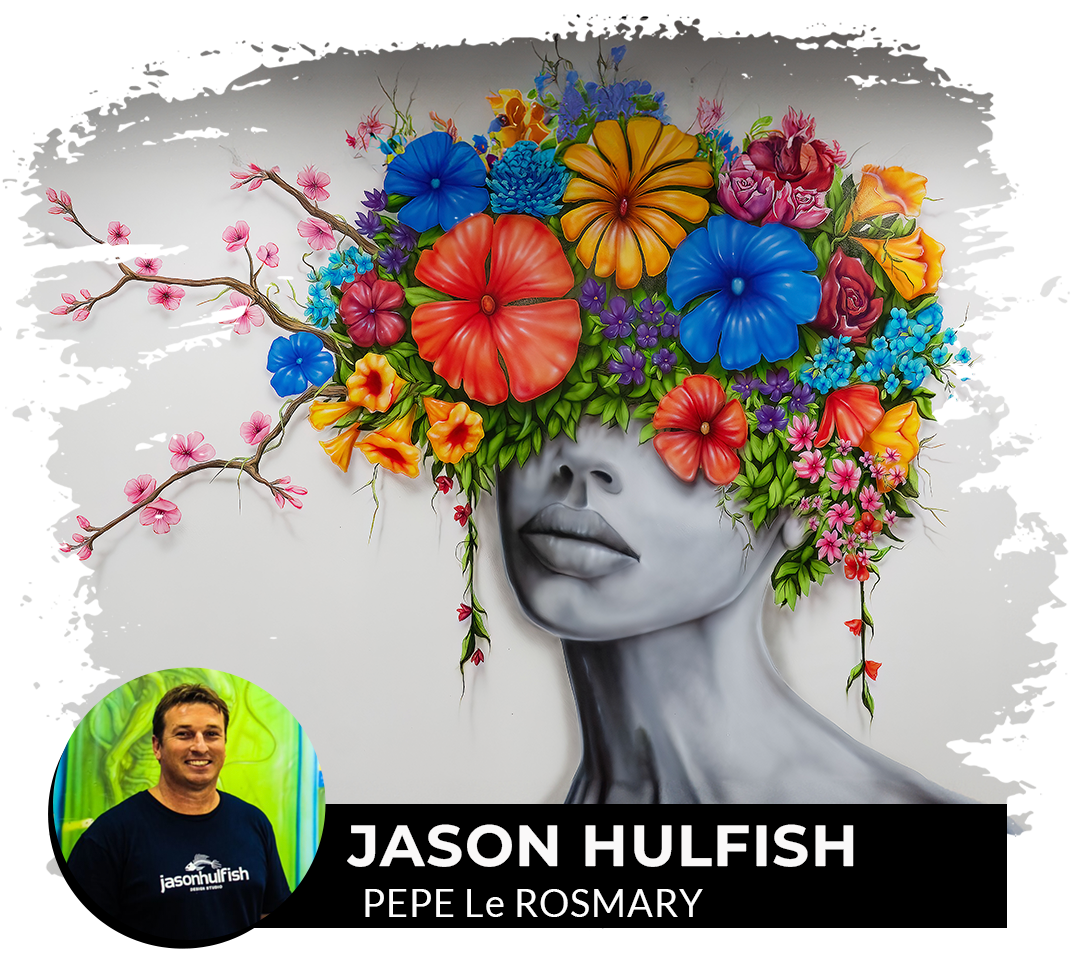 Jason Hulfish, a Tampa-based entrepreneur, muralist, furniture designer, and professional artist, has been transforming spaces with his creative vision for over 20 years. His artistic journey began designing T-shirts, a passion that quickly evolved into intricate custom designs for residential and commercial spaces.