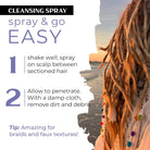 TO USE: Shake well. Spray directly onto scalp between sectioned hair. Allow to penetrate. With a damp cloth, remove dirt and debris. Use an exfoliating cloth to remove scalp buildup.