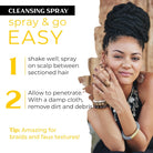 TO USE: Shake well. Spray directly onto scalp between sectioned hair. Allow to penetrate. With a damp cloth, remove dirt and debris. Use an exfoliating cloth to remove scalp buildup.