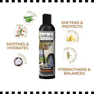 A pH-balanced versatile lightweight conditioner designed to revitalize any hair type or texture; dreadlocks, brushable natural hair, and faux-textures. Formulated to replenishes moisture, strengthens hair, preventing breakage and damage, while leaving your hair feeling healthy, shiny, and soft without any buildup.