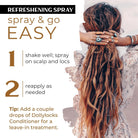 TO USE: Shake well and spray directly onto scalp and dreadlocks. Reapply as needed to achieve desired hydration.