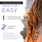 TO USE: Shake well and spray directly onto scalp and dreadlocks. Reapply as needed to achieve desired hydration.