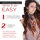 TO USE: Shake well and spray directly onto scalp and dreadlocks. Reapply as needed to achieve desired hydration.