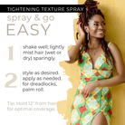 TO USE: Shake well and lightly mist damp or dry hair. Style as desired. Apply sparingly as needed. For dreadlocks, palm roll after for best results.